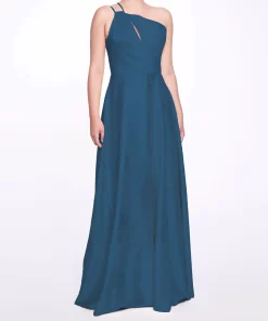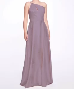 Marchesa Notte Bridal Women’s Eveningwear Blush Pink One Shoulder Two Strap Chiffon Gown | Blush