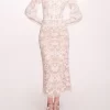 Marchesa Notte Bridal Women’s Daywear Rosette Ruffle Midi Dress | Denim Blue