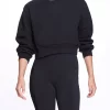 Marchesa Notte Bridal Kid’s Women’s Black Crew Neck Cropped Sweatshirt With Mesh Cutout Back | Black