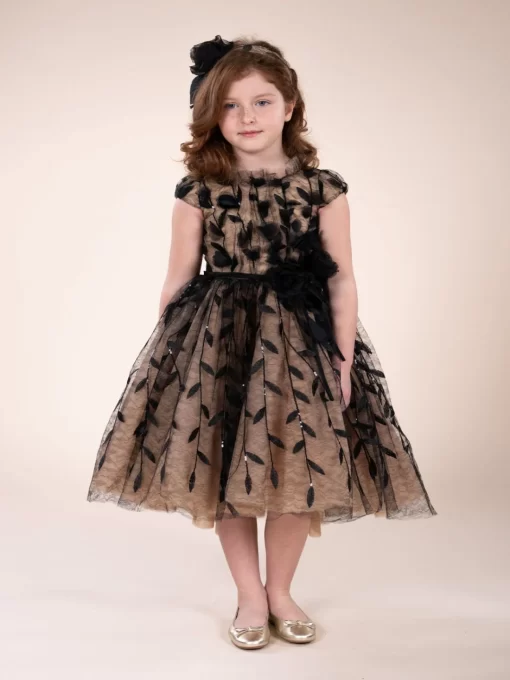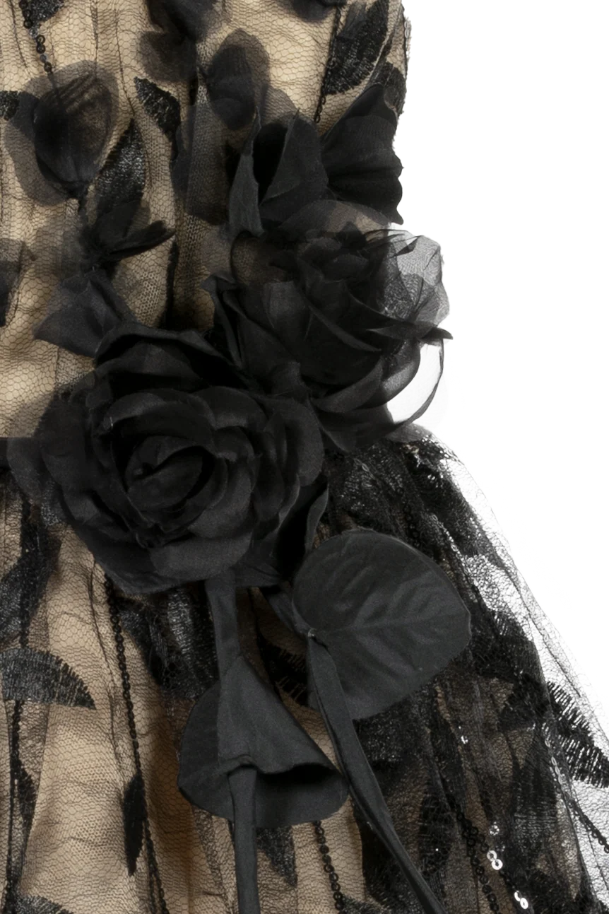 Marchesa Notte Bridal Kid’s Sequin Floral Tulle Dress | Black