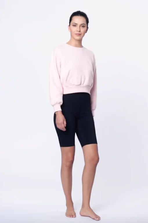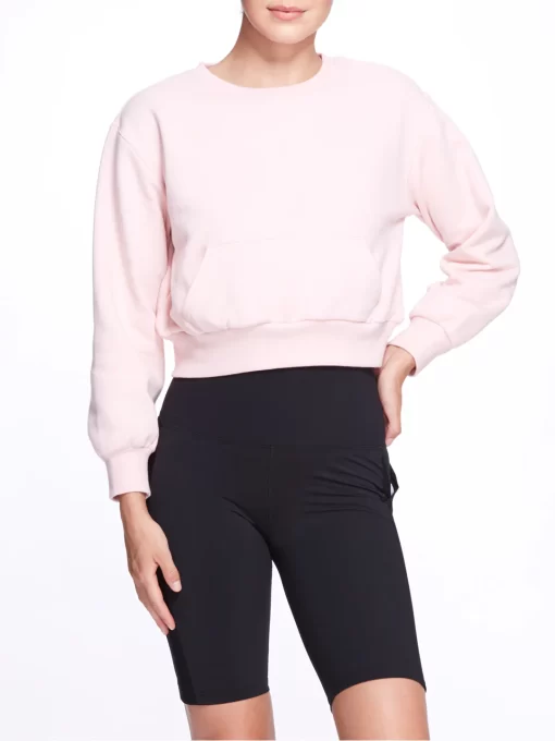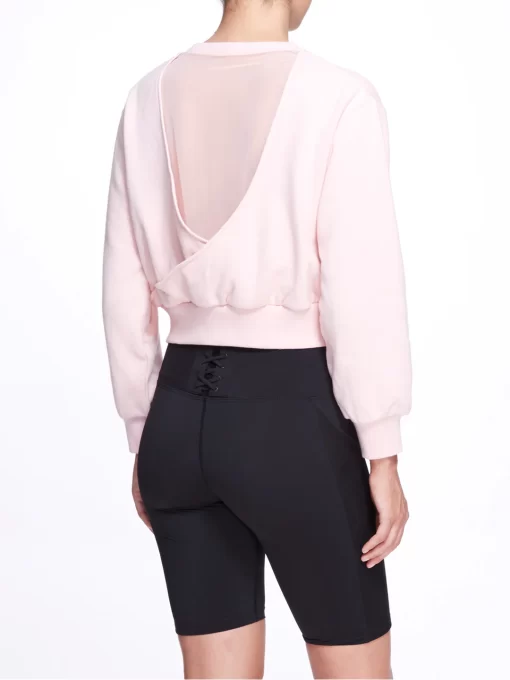 Marchesa Notte Bridal Kid’s Women’s Blush Pink Crew Neck Cropped Sweatshirt With Mesh Cutout Back | Blush