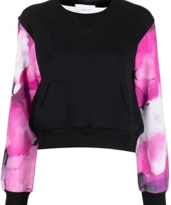 The Wilma Sweatshirt Printed is made of a super soft fleece jersey fabric, a crew rib neckline with embroidered bow detail, dropped shoulder, a blouse effect long sleeve with blouse effect and a relaxed cropped fit. The Marchesa signature painterly floral print mix in raspberry multi with black accents and cool tones breathes life into this athleisure piece.