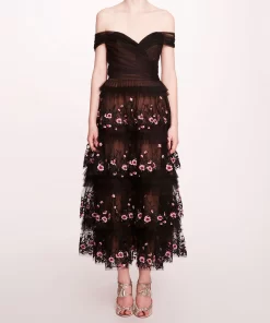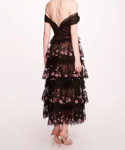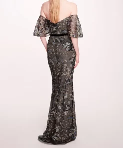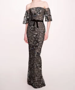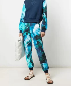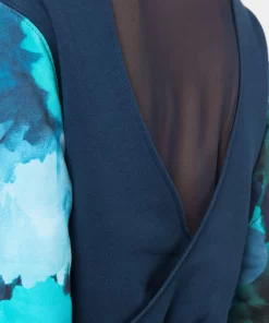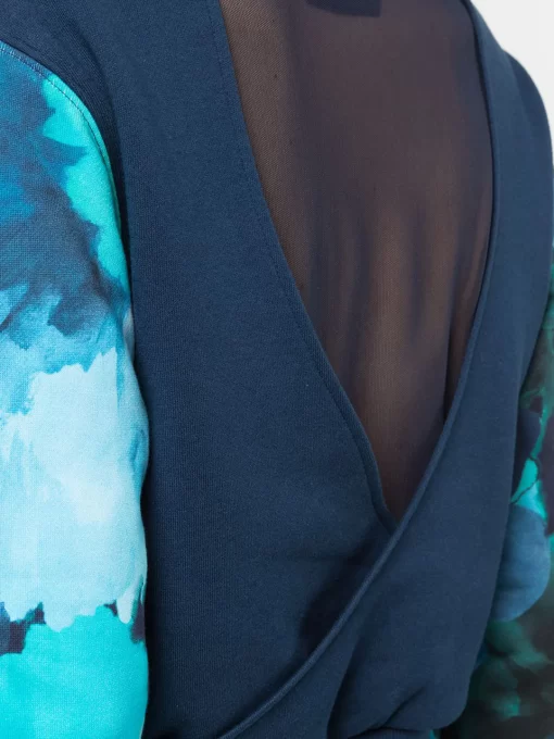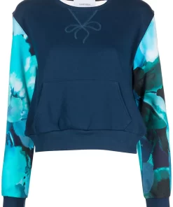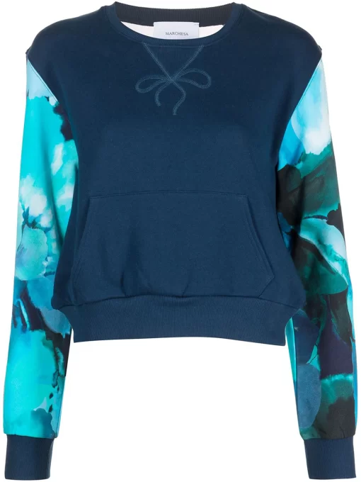 Marchesa Notte Bridal Women’s Blue Floral Printed Crew Neck Cropped Sweatshirt With Mesh Cutout Back | Navy Multi
