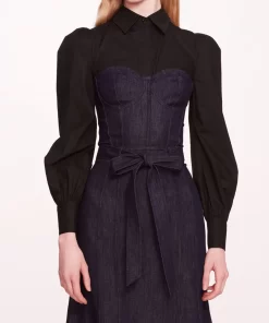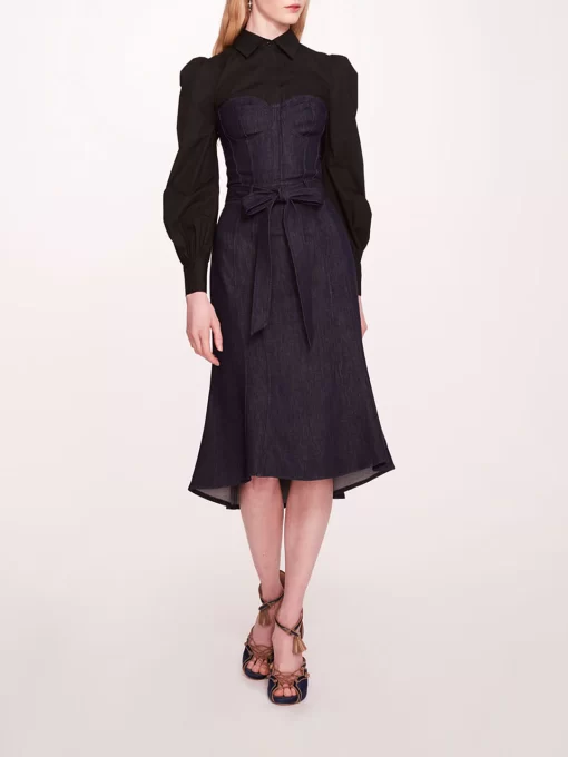 Marchesa Notte Bridal Women’s Daywear Denim Poplin Shirt Dress | Deep Indigo Black