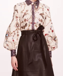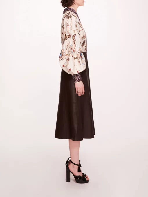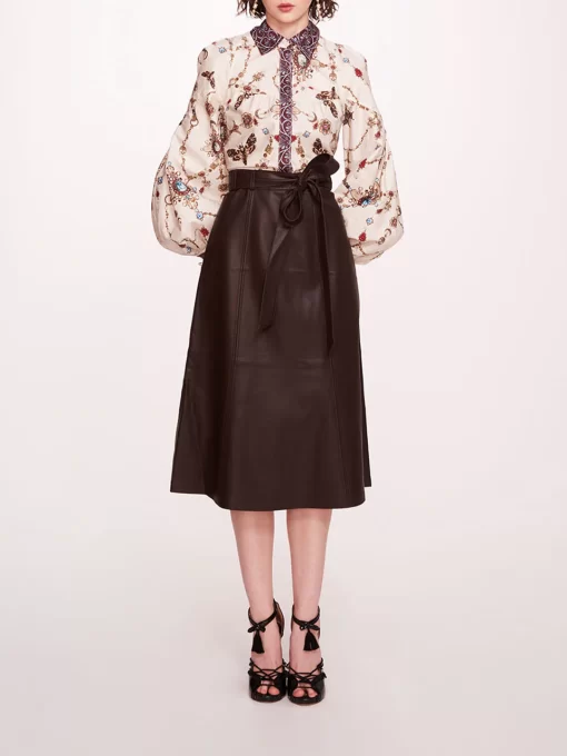 Marchesa Notte Bridal Women’s Daywear Faux Leather Poplin Midi Dress | Ivory Chocolate
