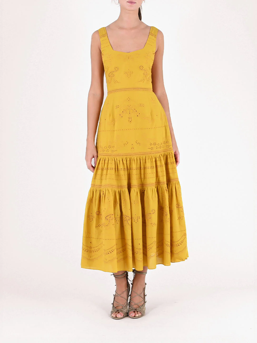 Marchesa Notte Bridal Women’s Daywear Voile Tiered Maxi Dress | Mustard