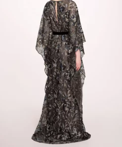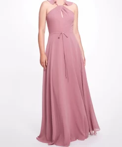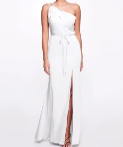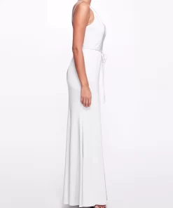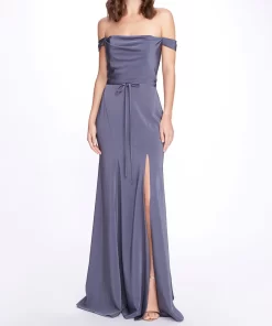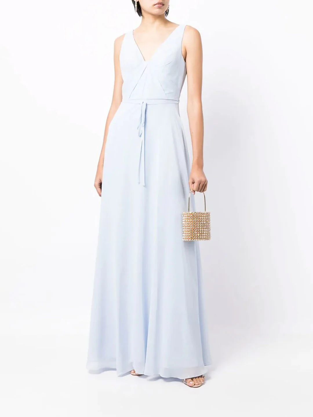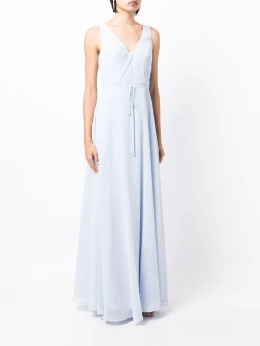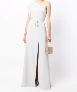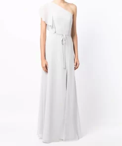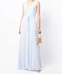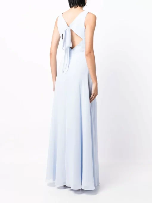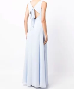 Marchesa Notte Bridal Women’s Eveningwear Dove Grey Gown With Open Back Cutout And Waist Tie | Ice Blue