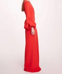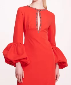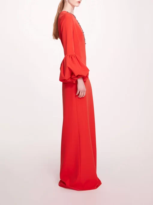 Marchesa Notte Bridal Women’s Eveningwear Puffed Sleeve Column Gown | Scarlet