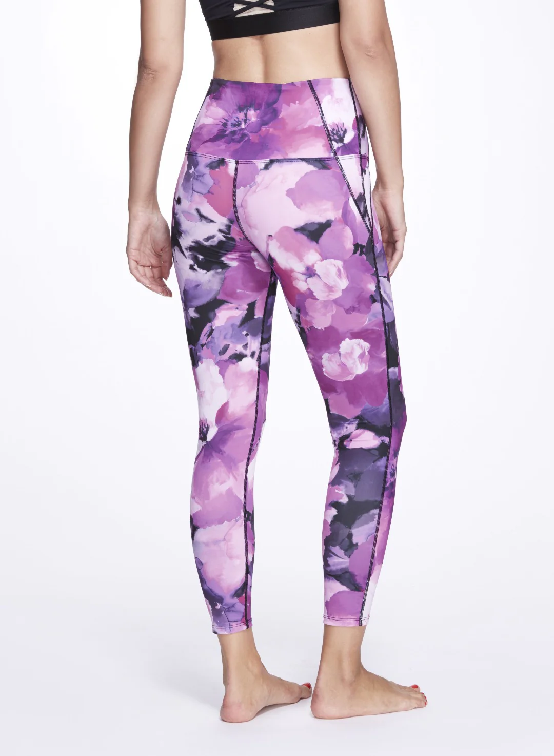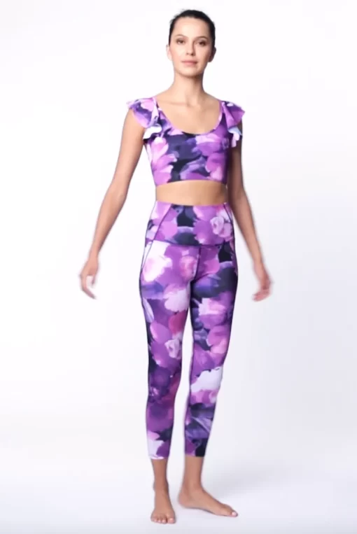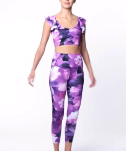 The Serena Legging features a high waist and compression fit made of super smooth purple floral print performance fabric – perfect for hitting the gym in style!